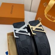 L.V頭層牛皮壓格子紋 新款腐蝕鋼扣 雙面頭層 帶身寬;4.0cm 配置專櫃盒子P140