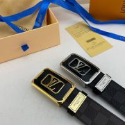 L.V 雙面頭層牛皮壓格子紋 搭配新款鋼扣 帶身寬;3.8cm 配置專櫃盒子P150