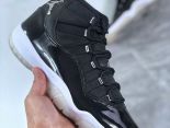整雙鞋以黑色為主調,黑色的大漆皮搭配尼龍鞋面,白色的中底加上乳白色水晶外底,與當年的那雙大魔王 Air Jordan 11 相似度極高。最大的亮點在於鞋帶孔部位配有 「JORDAN」 字樣點綴,這個設計之前只出現在 DMP 套裝中的那雙小金人 Air Jordan 11 上,後跟的 Jumpman Logo 似乎是以銀色金屬打造。