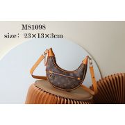 頂級原單 獨家實拍 M81098 對版貨 Nicolas Ghesquière 溯源檔案中的 Croissant 手袋,於 2022 早春系列推出 Loop 半月形法棍包。緊湊構型貼合身體律動,拉鏈前袋配有圓形拉鏈頭,鏈條和皮革肩帶實現肩背和斜挎選擇。尺寸:23 x 13 x 6 厘米