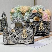 Dior中號 LADY D-JOY 刺繡手袋「白色巴黎」