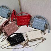 高雅的復古風格迷妳手袋是本季新品,搭配頂部手柄和抽繩設計,令 Lady Dior 系列更加豐富。采用黑色藤格紋羊皮革精心制作,飾以D.I.O.R.吊飾和抽繩開合。搭配可拆卸的皮革手柄,可拆卸鏈條點綴以珠飾,可手拿或斜挎。