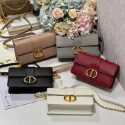 采用白色牛皮革精心制作,經典優雅的設計提升該系列的格調。翻蓋飾以復古金色飾面金屬CD扣環,靈感源自 Christian Dior 香水瓶的封口。背面30 MONTAIGNE壓花標誌等其他細節突顯利落的設計。搭配飾以皮革鑲片的可拆卸鏈條肩帶,可手提、肩背或斜挎。