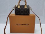 原單實拍圖M81085迷你枕頭包Nano Speedy 手袋濃縮路易威登經典 Speedy 手袋構型,以 Monogram 帆布塑造玲瓏設計,搭配做舊牛皮革細節和金屬件。手柄和可拆卸並調節的肩帶成就多種造型可能。16 x 10 x 7.5 厘米 (長度 x 高 x 寬)(448055)
