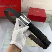 飛拉 新款銅扣 頭層牛皮荔枝紋 黑色咖啡色兩面用帶身寬:3.4cm 150 配置專櫃盒子