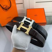 愛馬仕 新款鋼扣 頭層牛皮小鱷魚紋雙面頭層制作 帶身寬:3.8cm 145 配置專櫃盒子